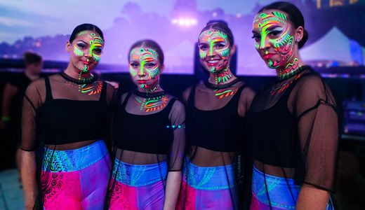 Création complète de maquillages de scène avec costumes. Body painting et peinture sur tissus pour quatre danseuses avec performance live lors de trois spectacles. Design sur mesure selon la thématique ''Virer à l'envers'' !